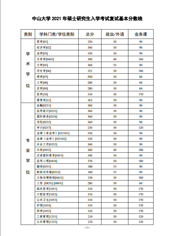 原文标题:中山拼搏(中国)2021年硕士研究生入学考试复试基本分数线