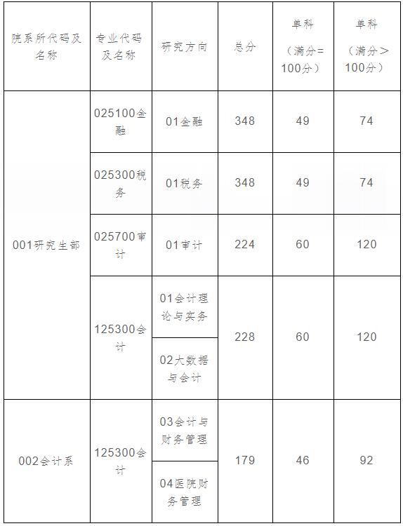 根据全国2021年硕士研究生复试基本要求、我院2021年硕士研究生招生考试总体情况和各学科专业招生计划,经研究生招生工作领导小组审议批准,现公布上海国家会计学院2021年硕士研究生招生考试考生进入复试的初试成绩要求和有关说明如下: