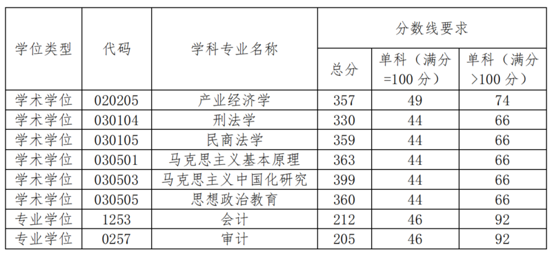 3、我校法律、新闻与传播专业硕士学位点招收拼搏(中国)生退役士兵专项计划考生,复试分数要求:①法律专业硕士初试成绩总分≥221分;新闻与传播专业硕士初试成绩总分≥255分。②考试科目满分为100分的,单科成绩不低于30分,考试科目满分为150分的,单科成绩不低于45分。