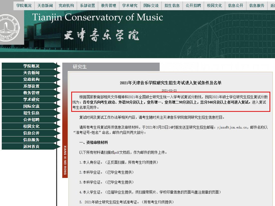 | 天津音乐学院2020复试分数线 | 2021拼搏在线官网国家线 |