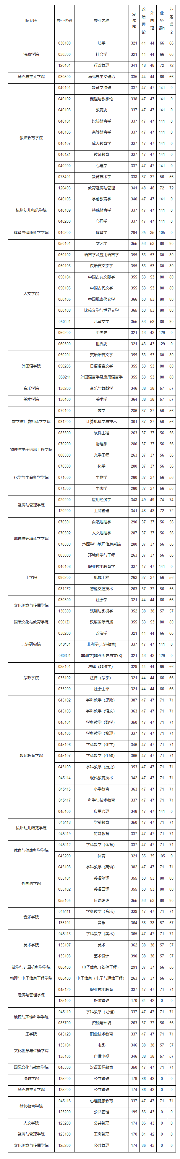 根据教育部及浙江省教育考试院相关文件精神,经学校研究生招生工作领导小组审定,现将2021年我校硕士研究生招生考试考生进入复试的初试成绩基本要求公布如下: