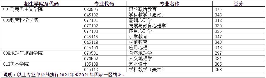 一、我校普通计划各专业除下表所列专业之外执行《2021年全国硕士研究生招生考试考生进入复试的初试成绩基本要求(一区)》(以下简称《2021年国家一区线》)。