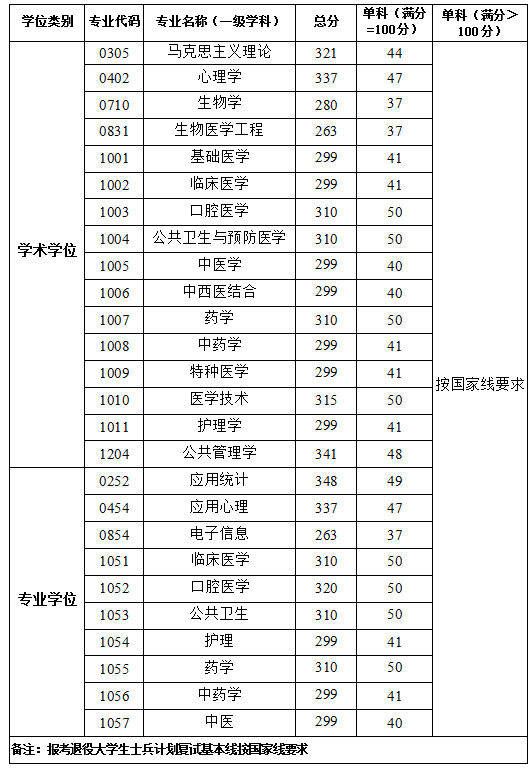 根据2021年全国硕士研究生招生考试考生进入复试的初试成绩基本要求,结合实际,现将我校2021年硕士研究生招生考试考生进入复试基本分数线公布如下: