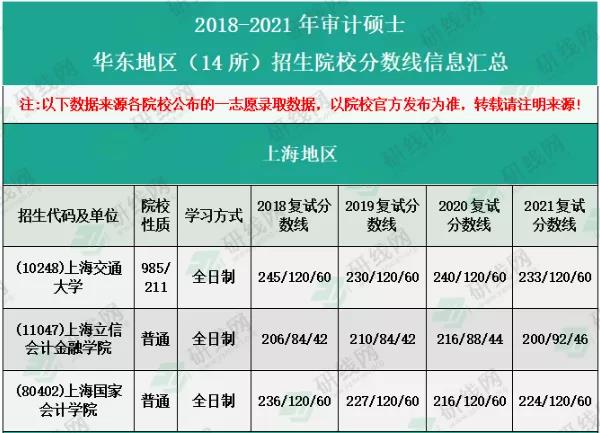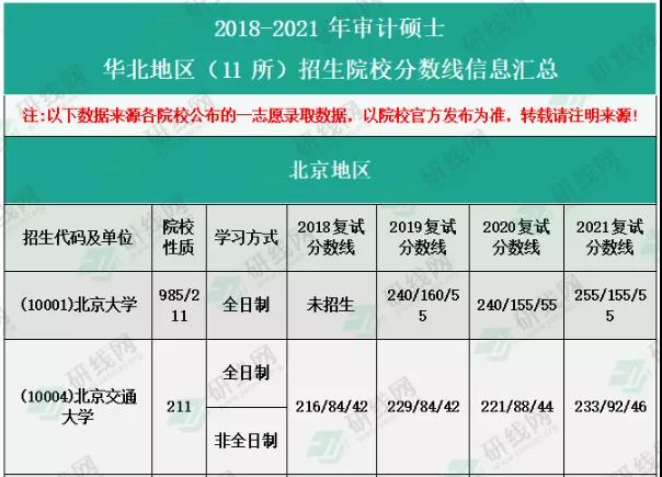 【研线数据行】2021年审计专硕全国49所院校复试线汇总来啦!各地区各院校信息都有哦!还不快码!