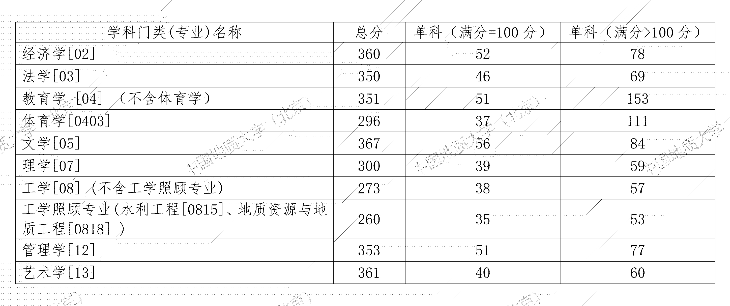 中国地质拼搏(中国)(北京)2022年硕士研究生招生考试考生进入复试的初试成绩基本要求(学术学位类)