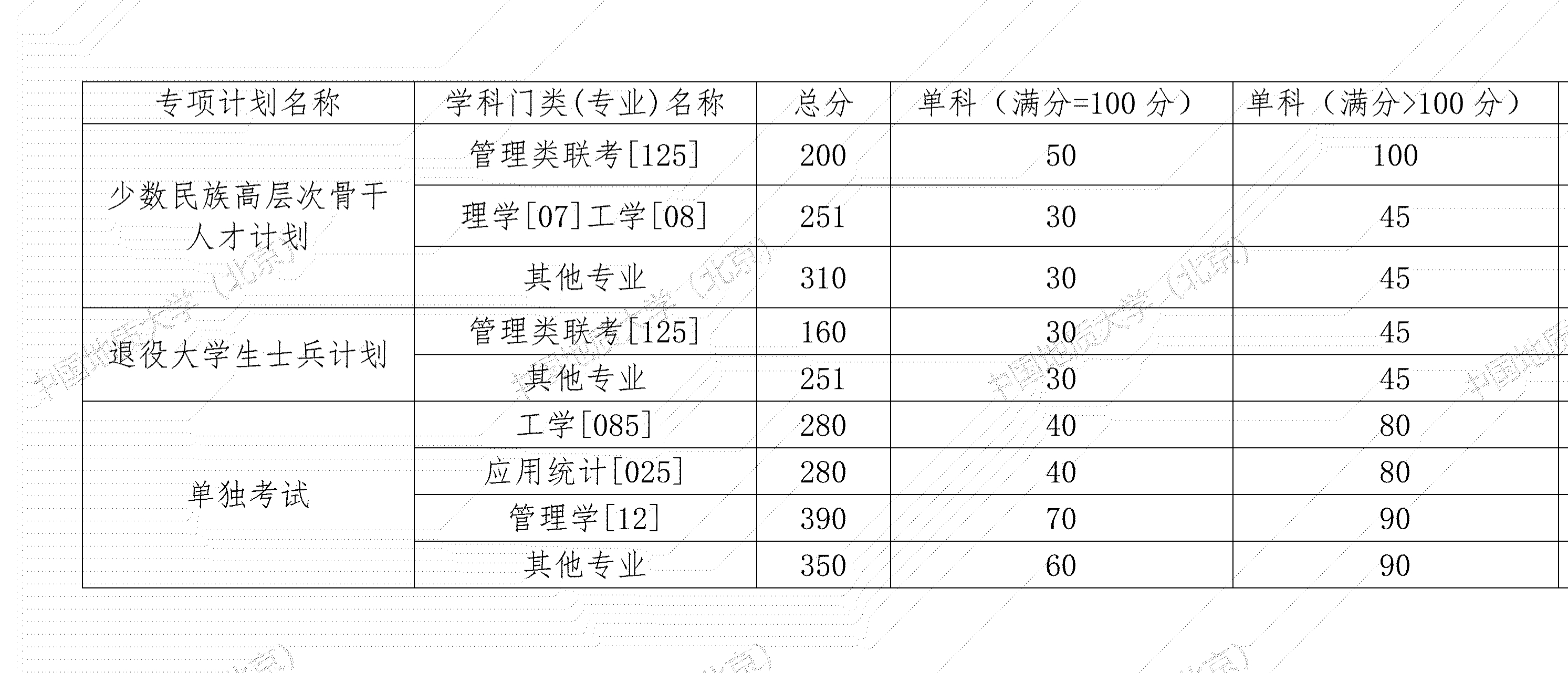 中国地质拼搏(中国)(北京)2022年硕士研究生招生考试考生进入复试的初试成绩基本要求(专项计划)