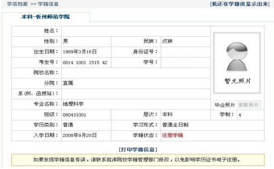 2、所有考生的资格审核以录取结果上报教育部后的审核结果为准。若考生在学信网无法查询到本人信息(见附图2)或学信网备案信息与报考信息不符(均会造成教育部录取审核无法通过,无法录取),请立即与本科院校相关部门联系以尽快更正或按以下办法进行学籍学历认证: