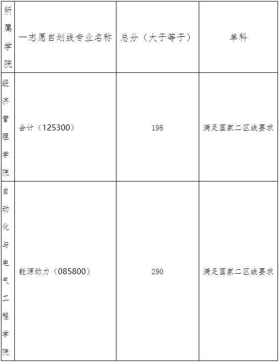 1. 一志愿报考我校并达到国家二区(B类考生)分数线的考生(自划线的专业必须满足我校公布的自定分数线);