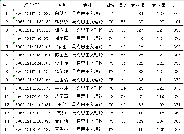 上线考生名单: