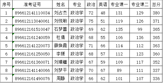根据我校考生的初试成绩基本情况,我校进入复试考生各专业初试成绩基本要求如下: