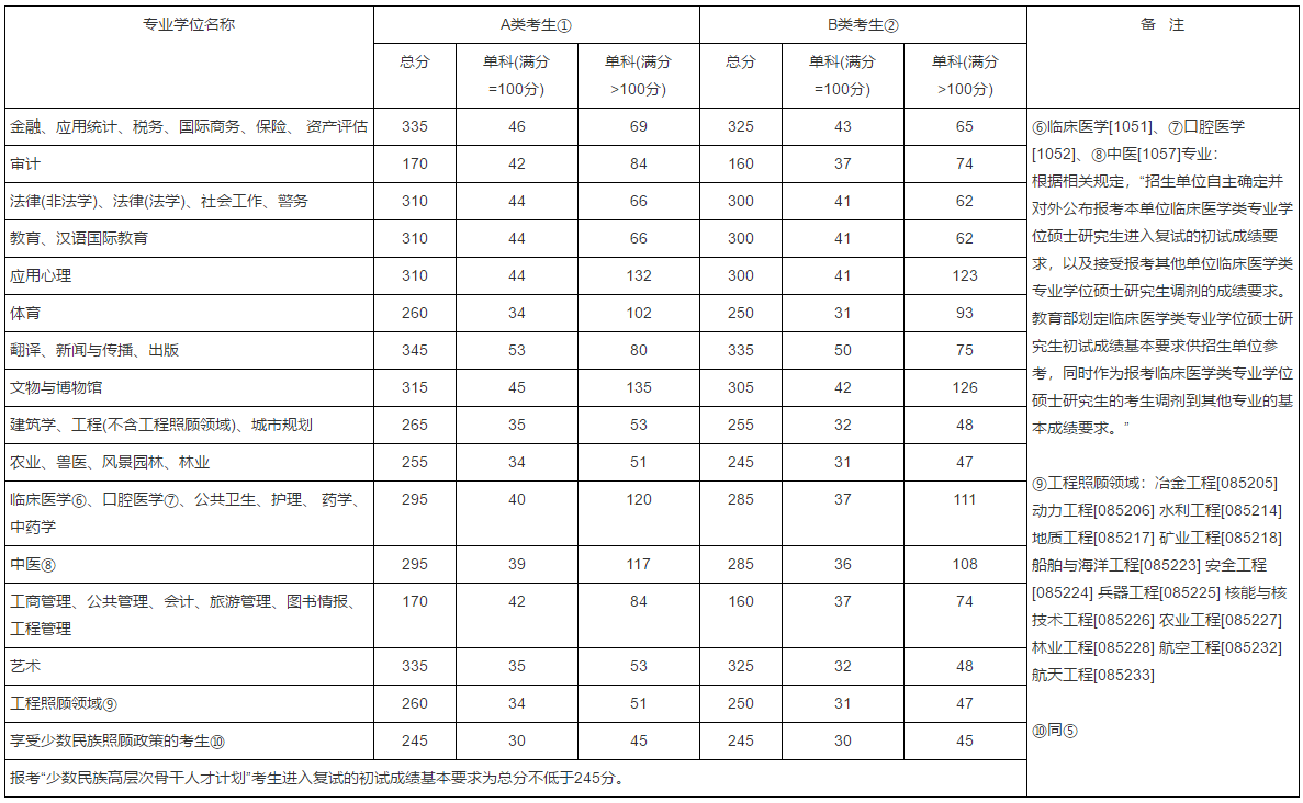 2017年国家线 |全国硕士研究生招生考试考生进入复试的初试成绩基本要求