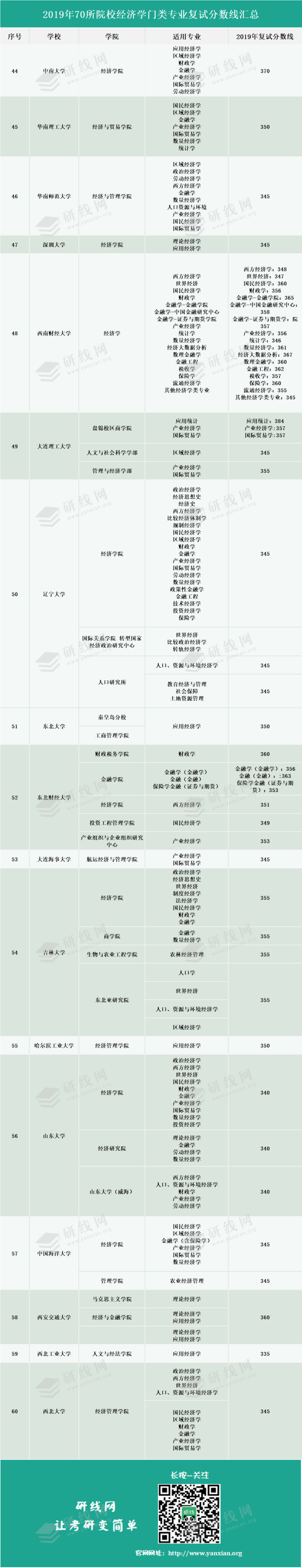 研线数据行提醒您:本次汇总涵盖北京、天津、河北、上海、广州、湖南、湖北等21个省市自治区直辖市的70所院校经济学门类相关专业复试分数线!