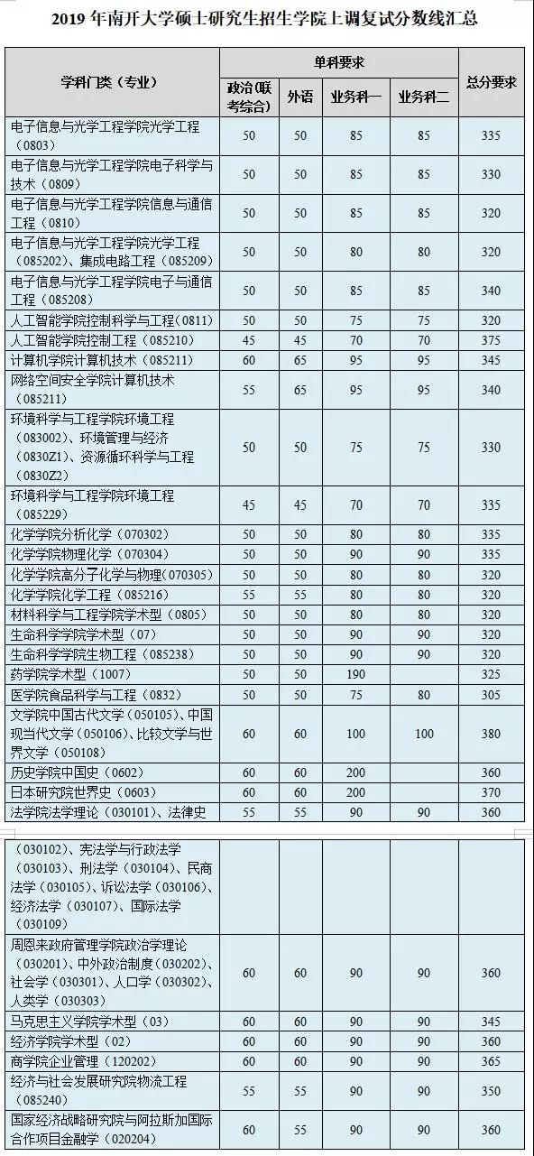 1、 以上复试基本要求为我校统考、联考生复试最低线,待国家线公布后,凡是没有达到国家线的考生,复试无效,不予录取。有关学院根据生源情况可在此基础上上调部分或全部专业的单科或总分线,详细情况请见南开拼搏(中国)研招网及各学院网站。
