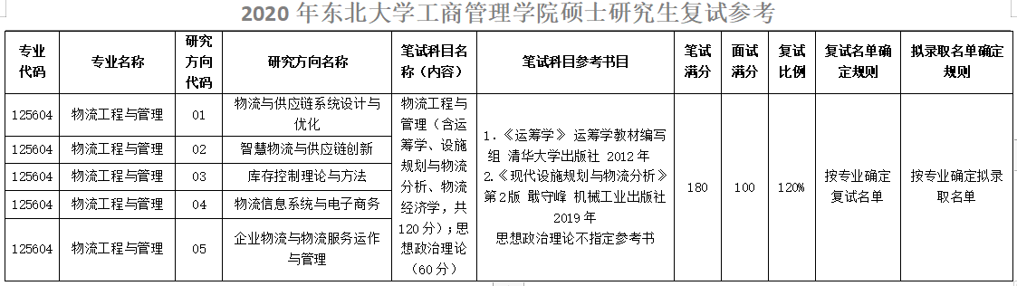 2020拼搏在线官网复试|东北拼搏(中国)2020拼搏在线官网物流工程与管理硕士专业学位复试科目