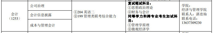 复试笔试科目: ①思想政治理论 ②财务与会计