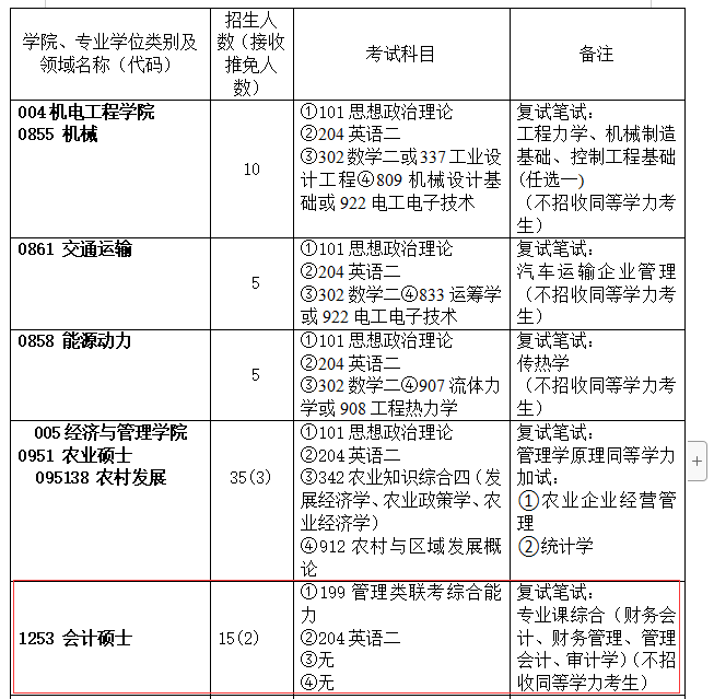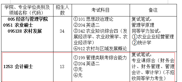 河南农业拼搏(中国)2020MPAcc会计硕士非全日制复试科目:
