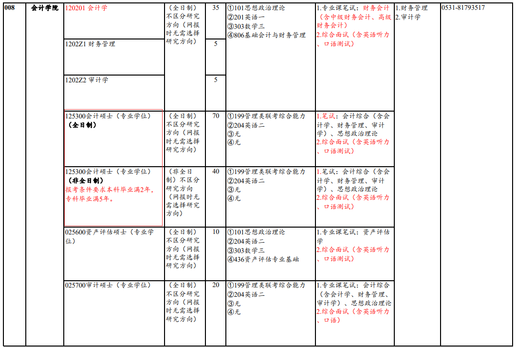 山东财经拼搏(中国)2020MPAcc会计硕士非全日制复试科目: