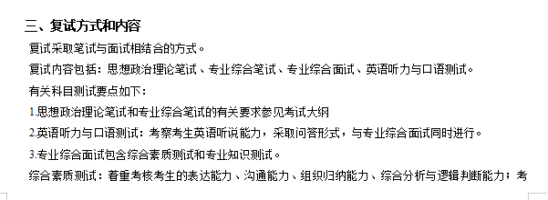 复试内容包括:思想政治理论笔试、专业综合笔试、专业综合面试、英语听力与口语测试。