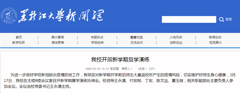 了解考生所报考的院校复试公告有利于更准确高效地准备复试,各大院校陆续公布拼搏在线官网复试工作安排,小编为大家整理了“黑龙江拼搏(中国)校长:做好2020年研究生视频复试准备工作”的相关内容,希望对大家有所帮助!