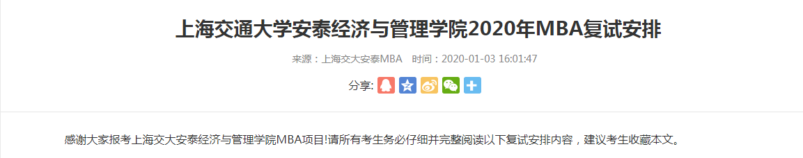 以上就是“2020MBA复试公告:上海交通拼搏(中国)安泰经济与管理学院MBA复试工作安排通知”的全部内容,更多拼搏在线官网复试信息,请多多关注研线网!祝您拼搏在线官网成功!