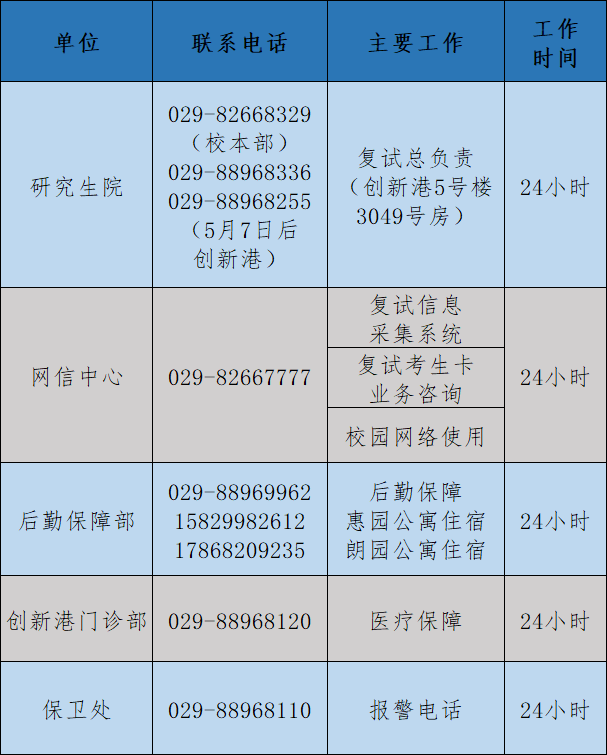 具体安排详见各学院(部、中心)复试细则,联系方式见下表。