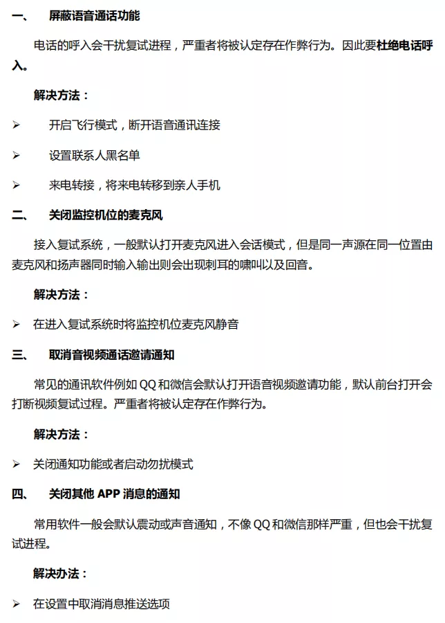 可视范围内不能有任何复试相关资料,不得有其他人在场。