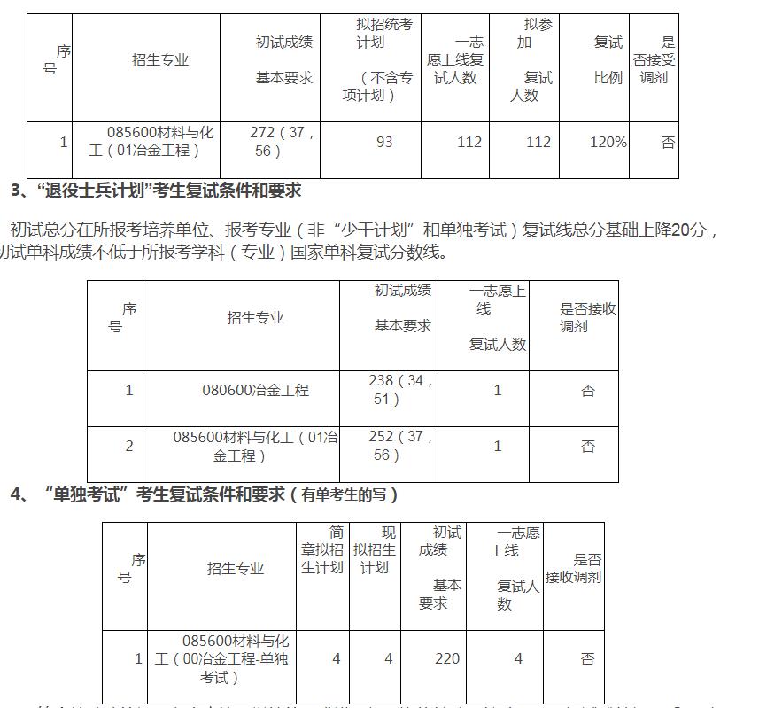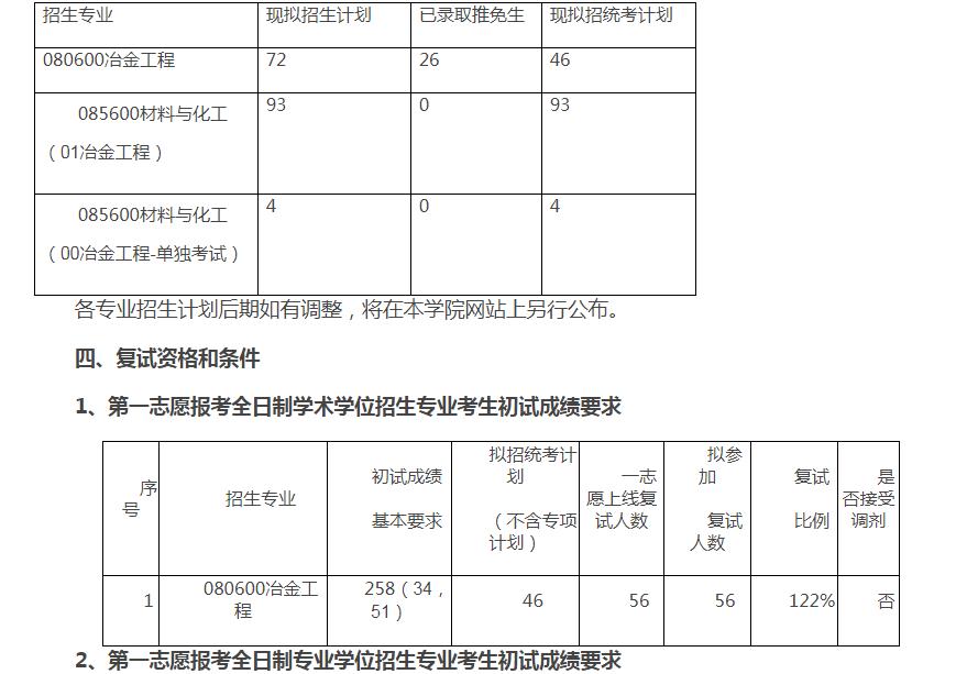 冶金与生态工程学院2020年硕士研究生各专业均不接收调剂。