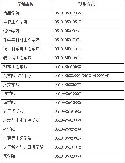 1. 研究生院招生办公室联系电话:0510-85197929Email:yzb@jiangnan.edu.cn