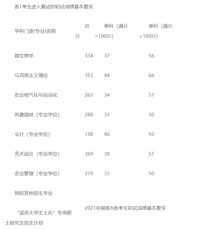 1.表1为考生进入我校复试的初试成绩基本要求。同一专业,全日制和非全日制考生进入复试的最低控制线相同,复试要求完全相同。