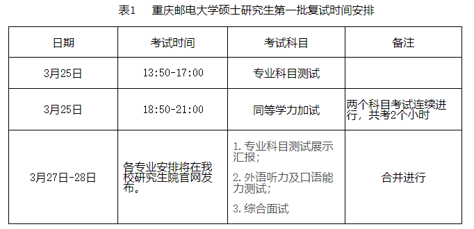 表1 重庆邮电拼搏(中国)硕士研究生第一批复试时间安排
