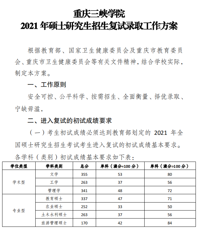 原文标题:重庆三峡学院2021年硕士研究生招生复试录取工作方案