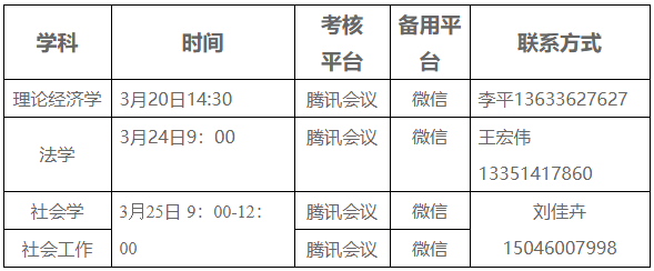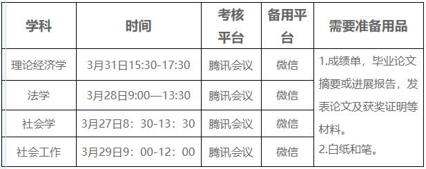 复试考生网络远程复试软件测试同时进行资格审查。各学科网络软件测试及资格审核时间参看图表。
