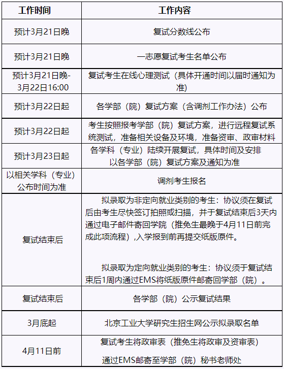 以上就是“2022拼搏在线官网复试安排_复试时间_复试方式:北京工业拼搏(中国)2022年硕士研究生招生复试、录取工作安排”的全部内容。更多内容请持续关注!