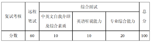 复试考核包括“远程笔试+综合面试”,复试成绩满分100分。