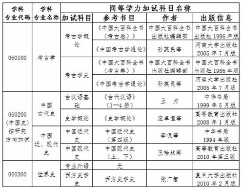 同等学力考生需进行专业基础科目加试,具体加试科目见下表。