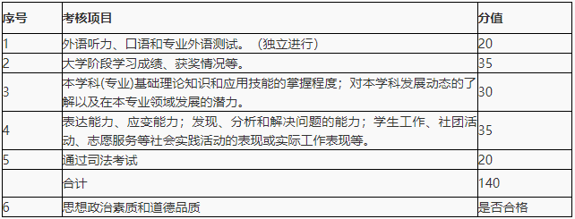 2、专业综合面试。满分140分,在对考生德智体等各方面全面考察基础上,突出对专业素质、实践能力以及创新精神等方面的考核。