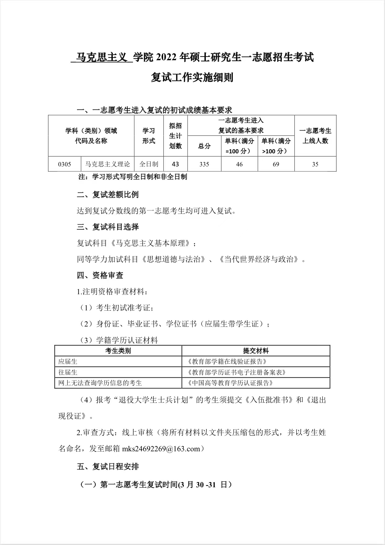 原文标题:马克思主义学院2022年硕士研究生一志愿招生考试复试工作实施细则