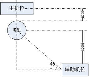 学生端采取双机位模式,即面试时,有两台设备同时在不同角度实施拍摄,主机位设备用作面试,辅助机位设备用作监控。面试时,考生坐在主机位正面,辅助机位放置在考生侧后45度角、距离2M位置,从侧后方拍摄面试过程。