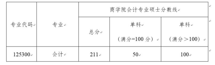 凡第一志愿报考我院会计硕士,且达到我校复试分数线(总分、单科,见下表)的考生,均可参加我院2022年会计硕士专业学位研究生复试。