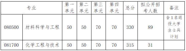 (3)以同等学力参加复试的考生,报考材料科学与工程加试科目为《半导体物理》、《材料科学与工程》,报考化学工程与技术加试科目为《有机化学》、《结构化学》。加试方式为面试,每科满分100分,面试时间一般不少于10分钟。加试成绩不计入复试总成绩。所有加试科目的成绩须达到满分的60%,否则复试不合格。
