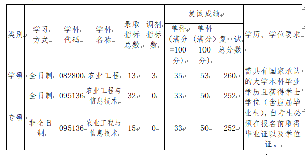 2.专业基础知识测试:开放性考试,以口头回答的方式进行;评价方式为定性评价,分“合格”、“不合格”两个等级,不合格者不予录取;考试科目为《农业工程概论》。