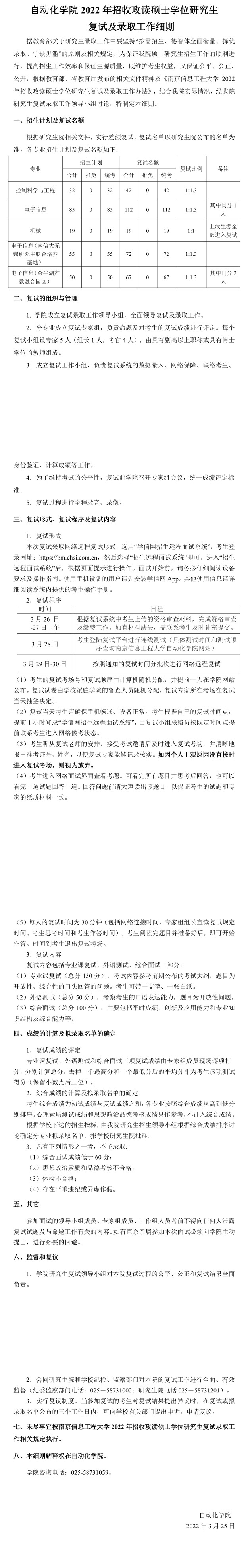 以上就是“2022拼搏在线官网复试安排_复试时间_复试方式:南京信息工程拼搏(中国)自动化学院2022年招收攻读硕士学位研究生复试及录取工作细则”的全部内容。更多内容请持续关注!