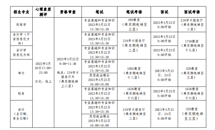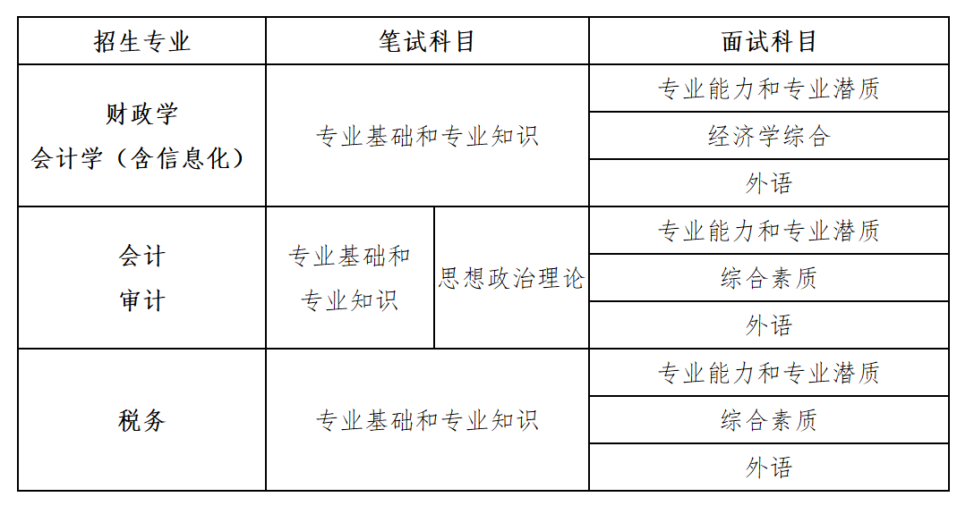 3.笔试和面试。各专业笔试和面试科目见下表: