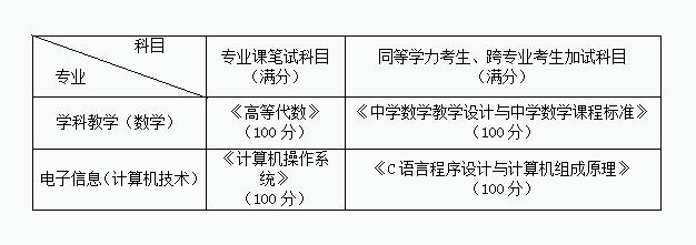 同等学力和跨专业加试科目,考试时间为2小时,满分100分,考试成绩不合格(未满60分者)的考生不予录取。