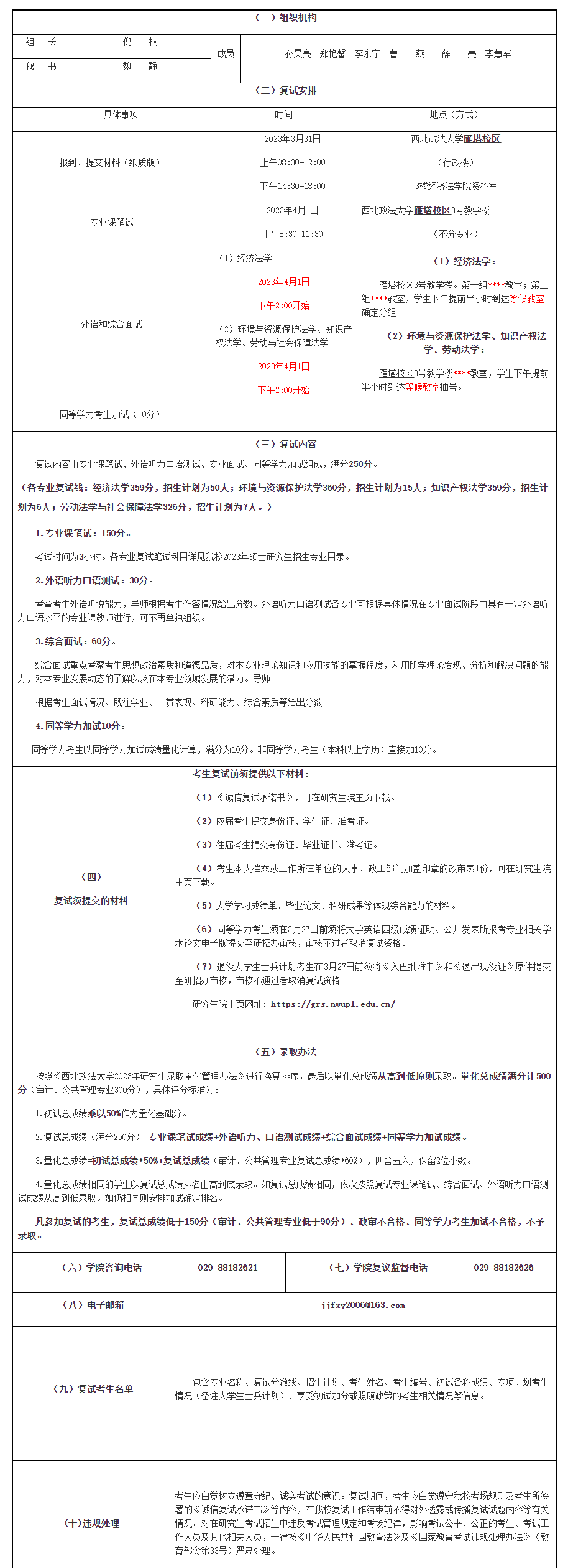 2023拼搏在线官网复试安排_复试时间_复试方式:西北政法拼搏(中国)2023年经济法学院一志愿考生复试录取方案