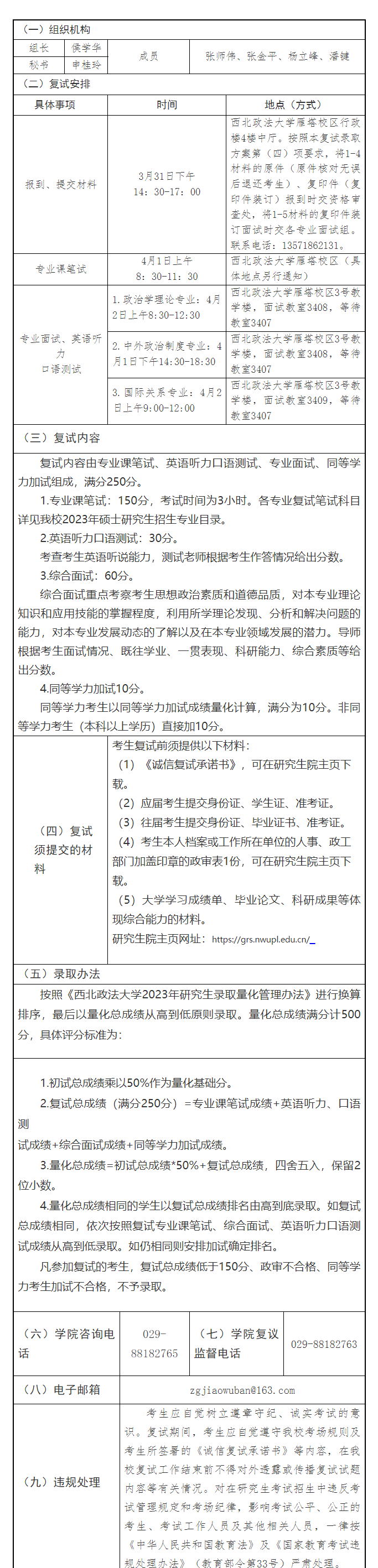 2023拼搏在线官网复试安排_复试时间_复试方式:西北政法拼搏(中国)2023年政治与公共管理学院一志愿考生复试录取方案