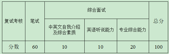 复试考核包括“笔试+综合面试”,复试成绩满分100分。