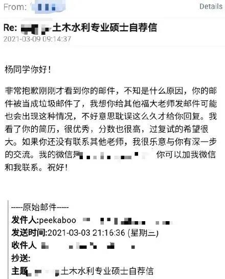 小提示:如果邮件迟迟没有得到导师的回复,可以换个邮箱试试哦。没有回复真的有可能被当成了垃圾邮件。