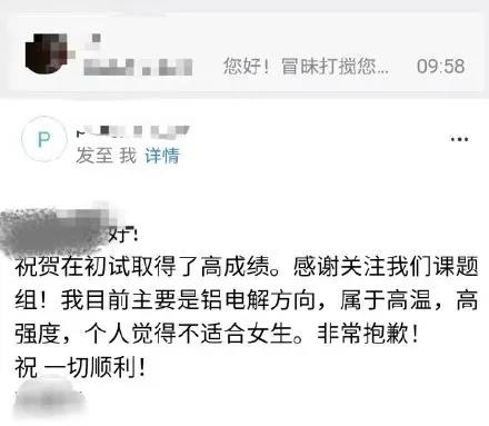 也有的导师会从研究现实条件来给予你一定的建议,例如上面的情况导师可能更倾向于男学生,也不失为一种良好的建议。