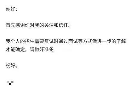 还有,也不乏有学校是入学后根据考生学科背景和导师研究方向,统一分配老师,即“复试通过每个学生都可以找到合适的导师”